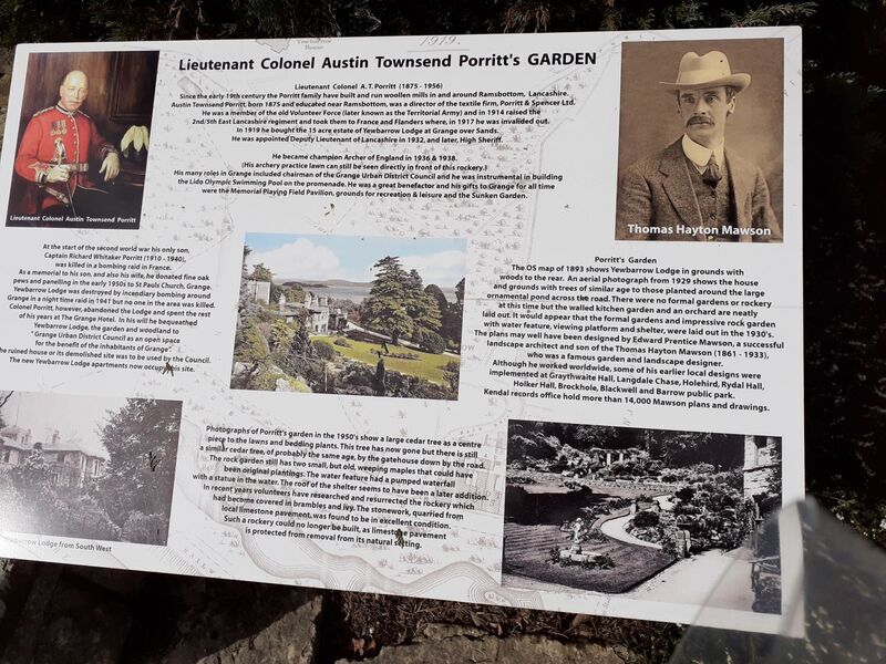 Originally the formal gardens for Yewbarrow Lodge, the home of Lieutenant Colonel Austin Porritt. The Lodge itself was badly damaged by incendiary bombs in 1941, but the gardens were unaffected.